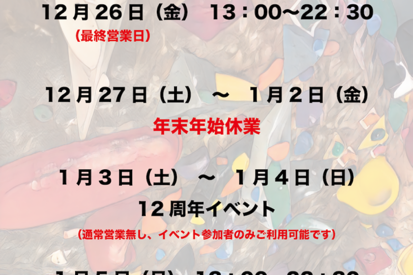 | 営業時間 | 月曜日 定休日 火曜〜金曜日 13:00-22:30 土曜〜日曜 10:00-20:00 祝日 10:00-20:00 |